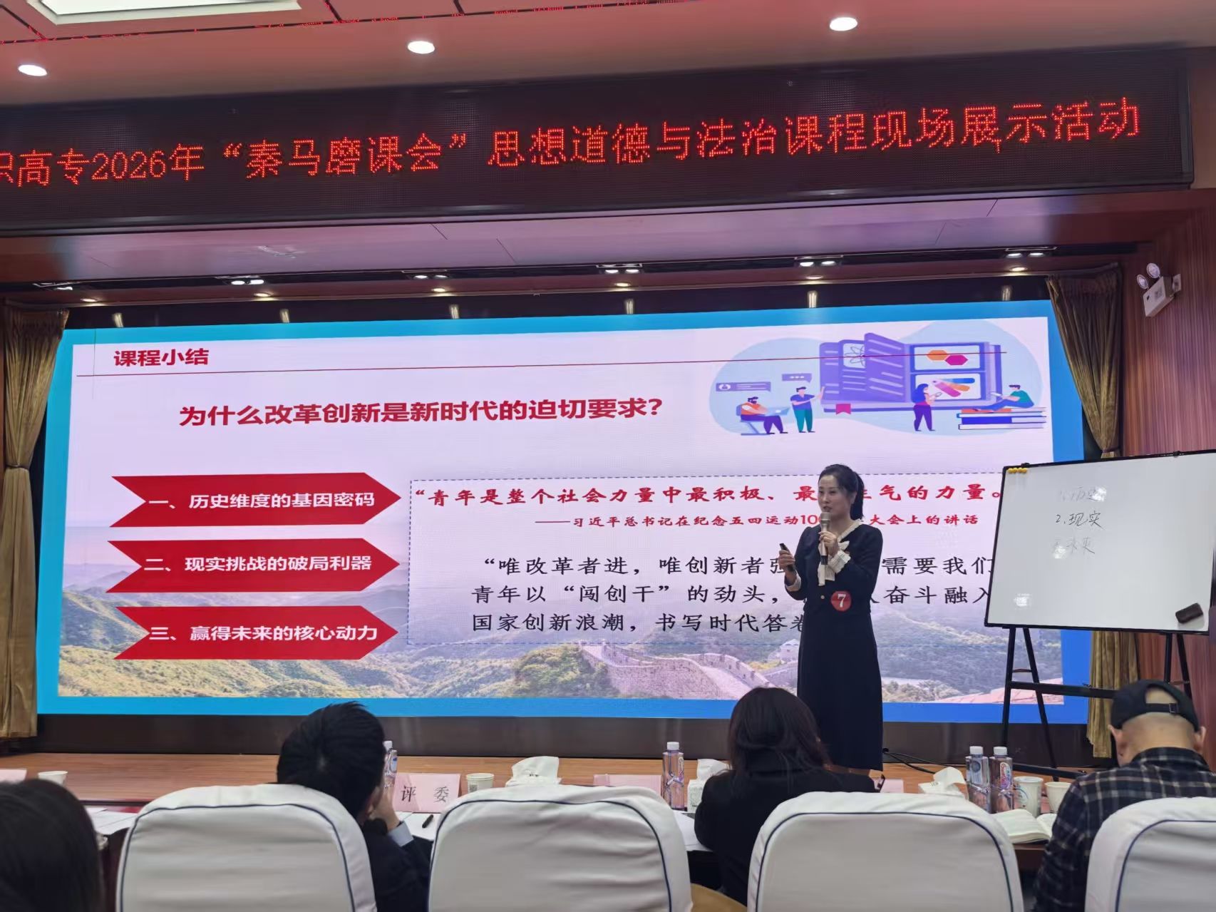 本次“秦马磨课会”由陕西省委教育工委指导,陕西省高职高专院校思想政治理论课教学研究会主办,陕西职业技术学院承办。活动以提升全省高职高专思政课教师教学基本功、推动思政课高质量发展为目标,设置了“线上初赛+现场展示”双轨赛制,并按教龄分为青年教师组和骨干教师组两个竞赛单元。活动共吸引全省27所高职院校的百余名思政课教师参与,竞争激烈,精彩纷呈。