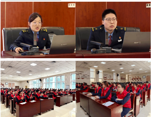 西安站的工作人员向志愿者们强调了人身、作业消防、及交通安全,并要求大家熟识各类安全标识,熟悉消防、疏散标识,确保在工作中规范着装,确保自身与旅客安全。同学们端坐于座椅上,目光聚焦于前方投影屏幕,神情专注,指尖不时在笔记本上记录相关要点,认真学习车站相关安全知识。