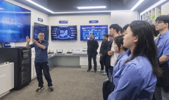 参观浪潮通信技术有限公司西北分公司企业展厅及实训区域时,产业导师详细介绍了新一代5G专网技术特点、架构优势及行业应用场景,展示了基于3GPP协议的标准化5G专网设备,以及其在智慧交通、智慧矿业等领域的创新应用成果,让学生直观感受5G技术如何赋能千行百业数字化转型。双方围绕订单班人才培养、岗位技能要求等内容展开交流,研讨5G现场工程师职业发展路径与能力要求。