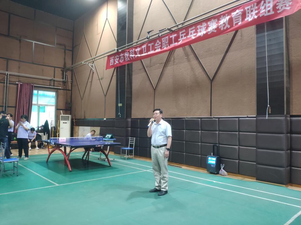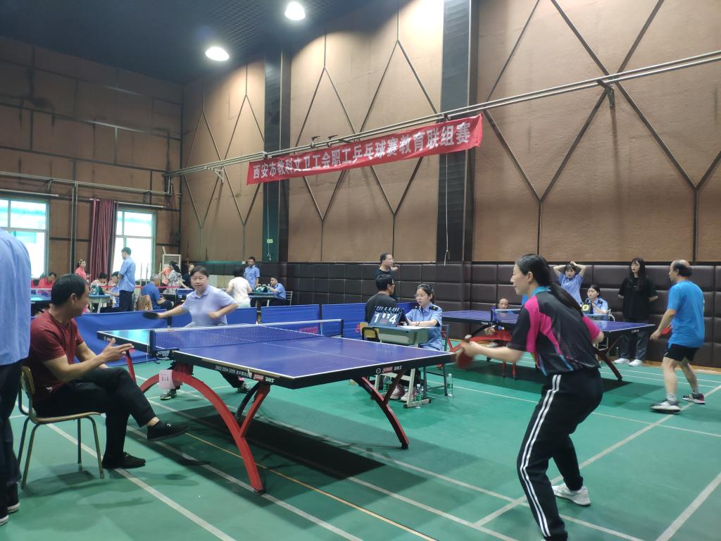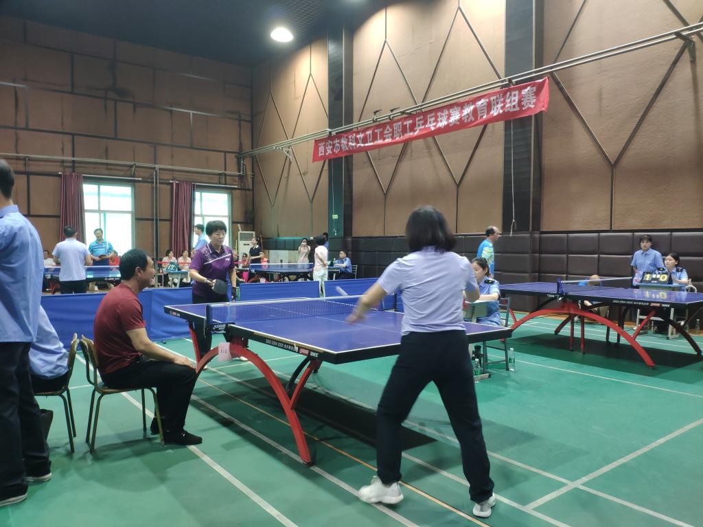 5月14日,市教科文卫工会第六届乒乓球教育联组赛在我院自强校区举行。本次比赛由西安市教科文卫工会主办,我院工会承办。上午8时,组委会副主任、院工会副主席同颖葵致开幕词并宣布比赛开始。