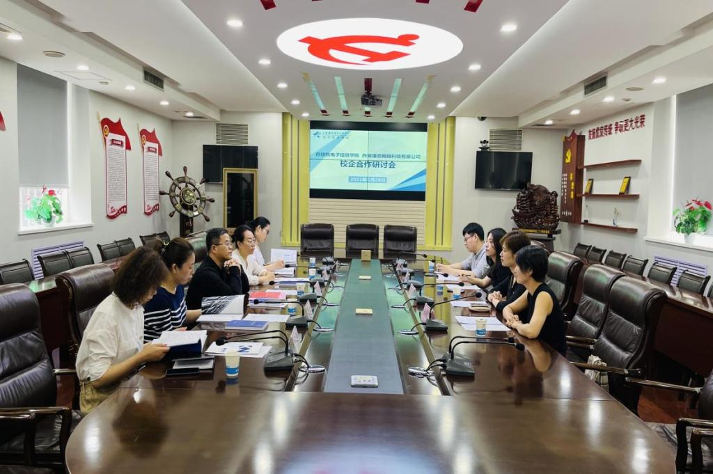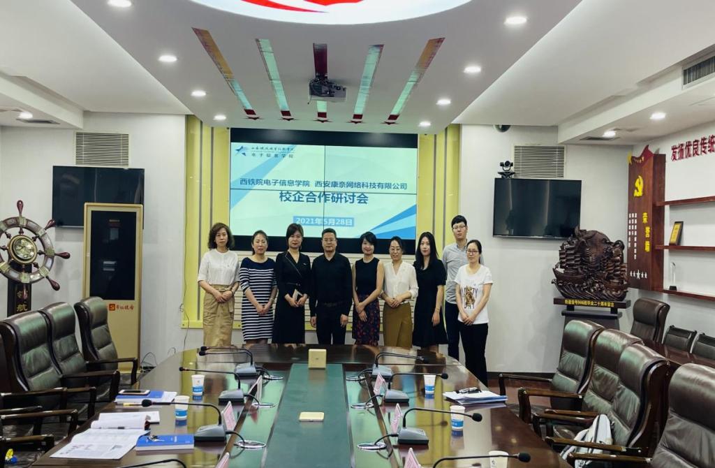 5月28日,电子信息学院与西安康奈网络科技有限公司校企合作研讨会在自强校区进行。西安康奈网络科技商务部负责人贺炜、商务部经理蔡佳、人事部经理李丹丹、策划部经理冯晨菲等出席会议。电子信息学院党总支书记张伟敏、办公室主任马荣及大数据和云计算专业带头人、学工办就业指导老师参加会议。
